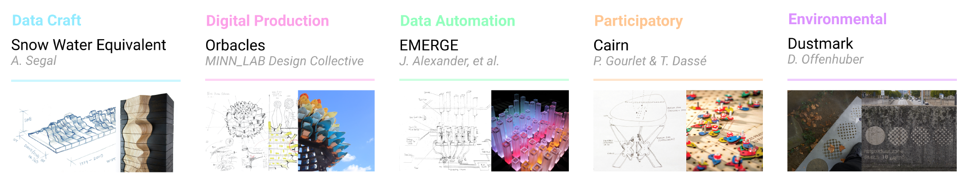 The five themes and selected example projects that capture how people are Making with Data